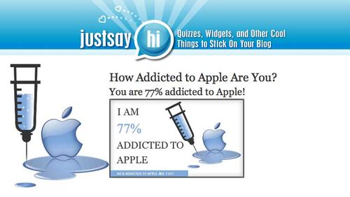 Appleの好き好き度合いを測るサイト。(http://www.justsayhi.com/bb/apple_addiction) さっそくやってみた結果が上の画像。 自分の怪しい解釈もあったものの、好き好き度は77パーセント。まあまあ、ってとこですね。 今までに使ったMacが、計7台。そのうち…