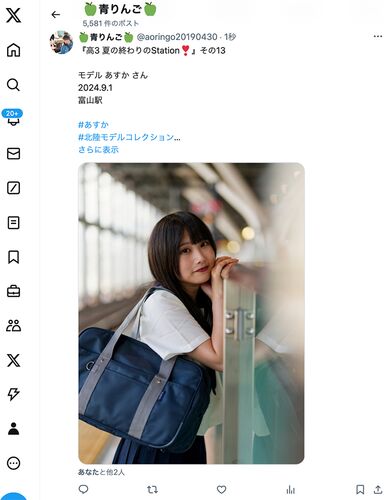 定年退職後2年経ちましたが、相変わらず無職の日々を満喫している青りんごです。 いつもスターやブックマーク、ブログランキングから読者登録まで、たくさんのご支援をいただきありがとうございます 本日のX投稿第2弾は、富山駅の彼氏とデート あすかちゃん…