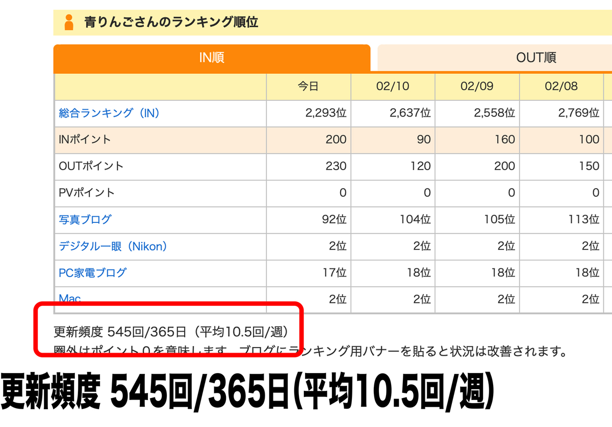 先の記事投稿で、ブログの更新頻度が週平均10.5回に到達。