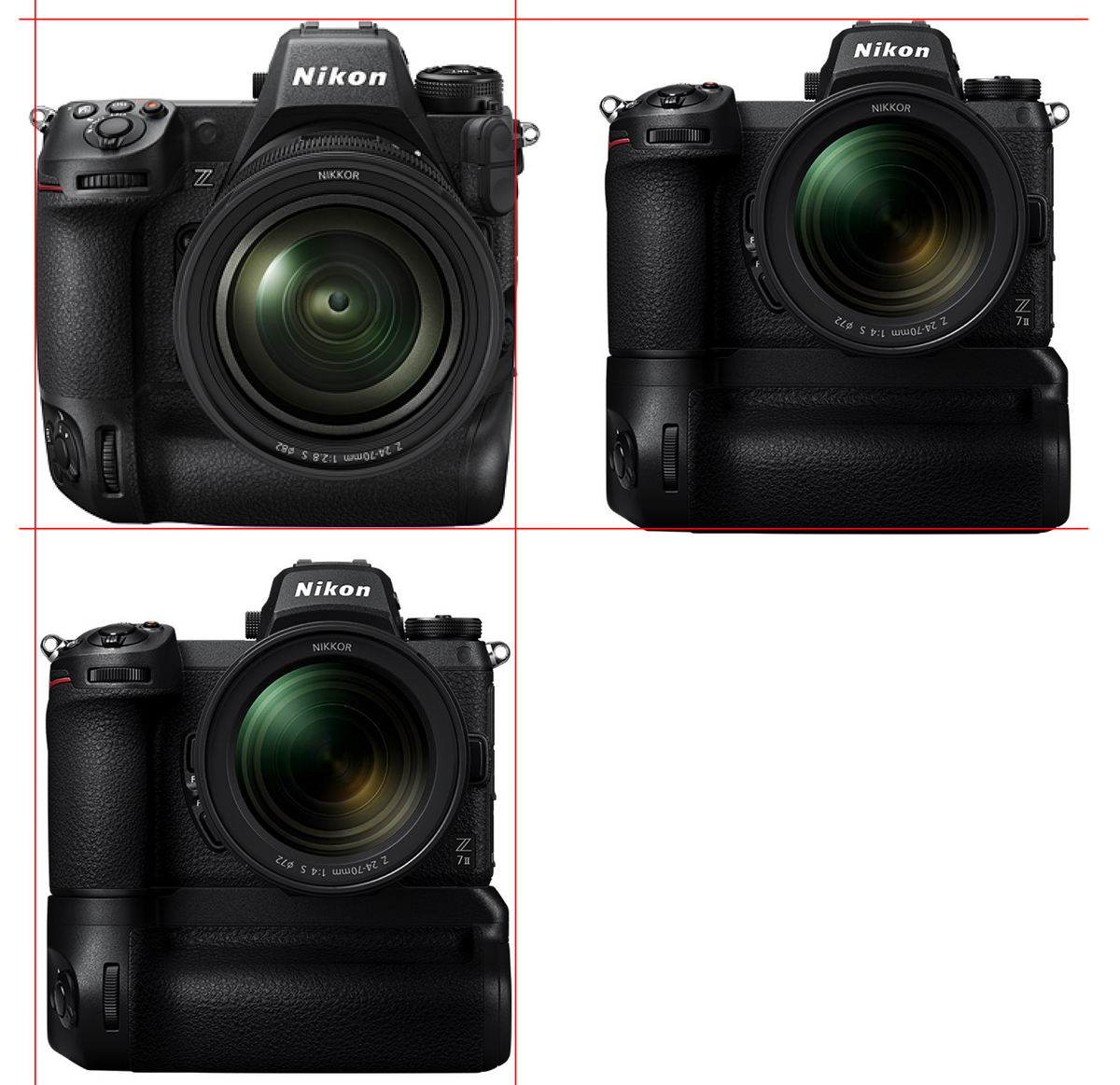 ちなみに、元画像の大きさや角度が違いますので、大きさについてはストロボを取り付けるホットシューの部分の大きさが同じになるように調整し、角度についてはどうしようもありませんでしたので、そのままです。赤い線は、Nikon Z9の大きさに合わせてみました。