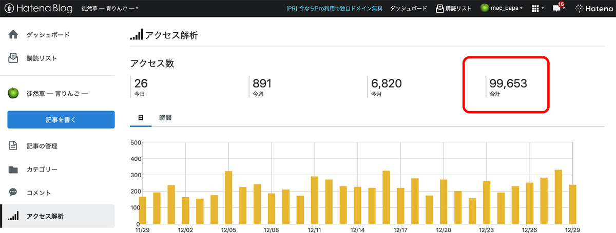 今年、今日を入れてあと2日となっていますが、ブログの総アクセス数が、昨日現在で99,627まで来ています。