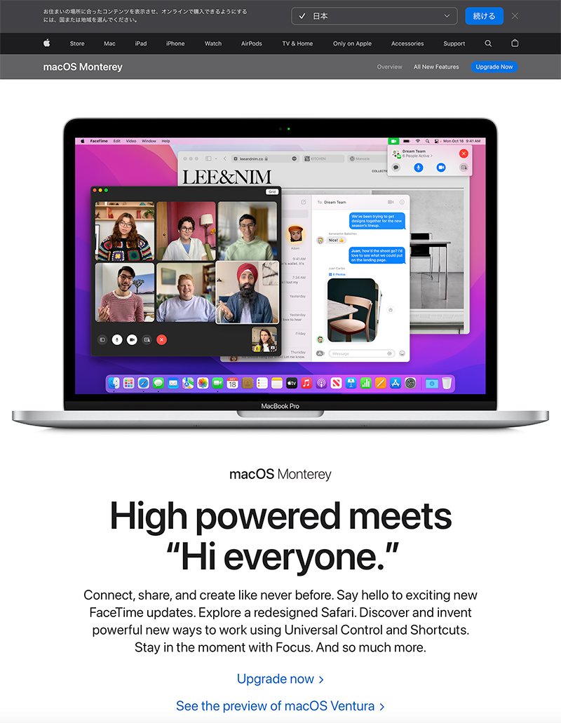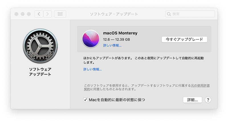 が、いろいろ考えるに、ここでMontereyにアップグレードすることを決意しました。