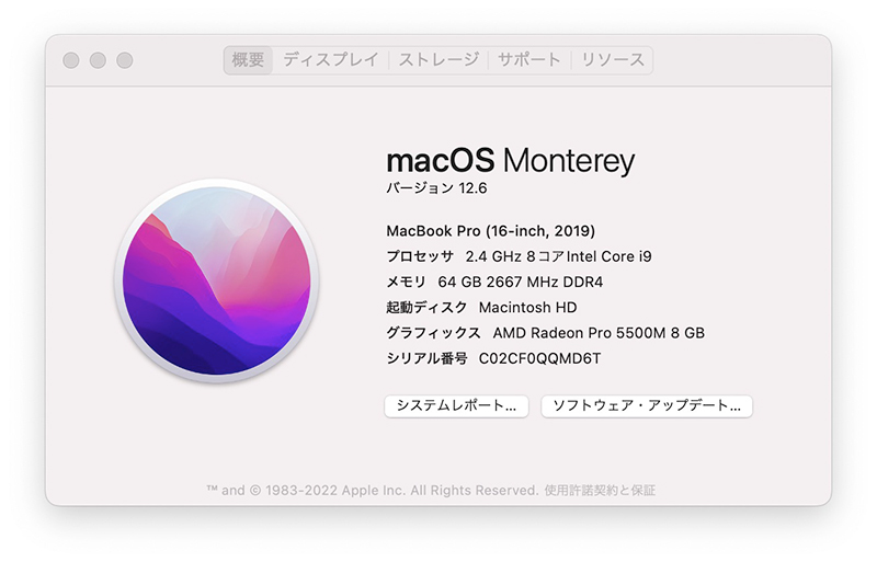 アップグレードをポチッとしてから、Montereyが起ち上がるまで、1時間10分ぐらいでした。