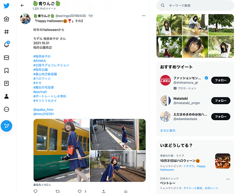 2022-10-31 1日1ツイート! 2022.10.31 その2 ─ あやかちゃん 2021.10.31 稲荷公園周辺 ─ 定年退職後、無職の日々を満喫している青りんごです。 いつもスターやブックマーク、ブログランキングから読者登録まで、たくさんのご支援をいただきありがとうございます😊 本日のTwitter投稿 第2弾もHalloween あやかさん。 キキ、可愛いです (^^) と、誤ってその1のTwitter投稿を消してしまいました。難しいです。 現在のファイル利用量 83%。 twitter.com twitter.com