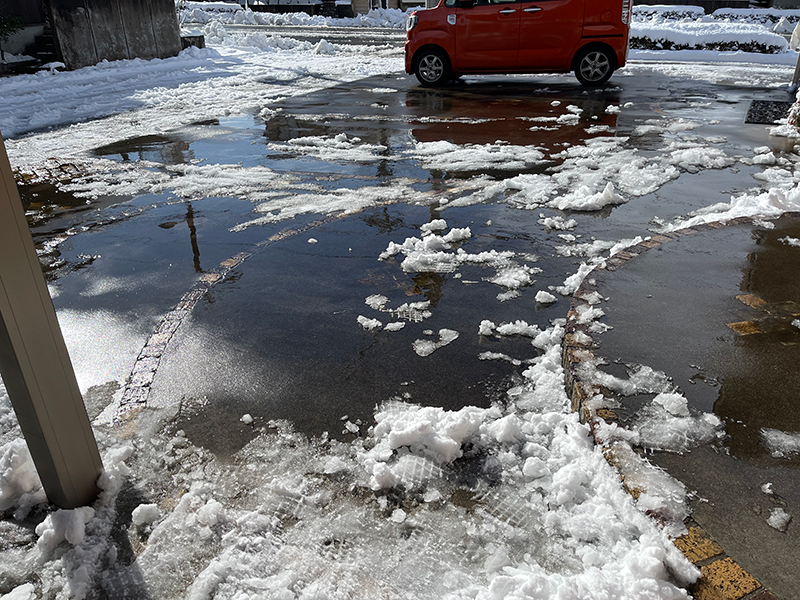 店の前の駐車場はロードヒーティングを入れていましたので、20cmぐらいかと思いますが、実際に歩道を空けてみると、けっこうな深さがありました。