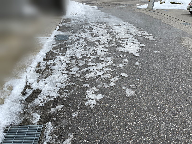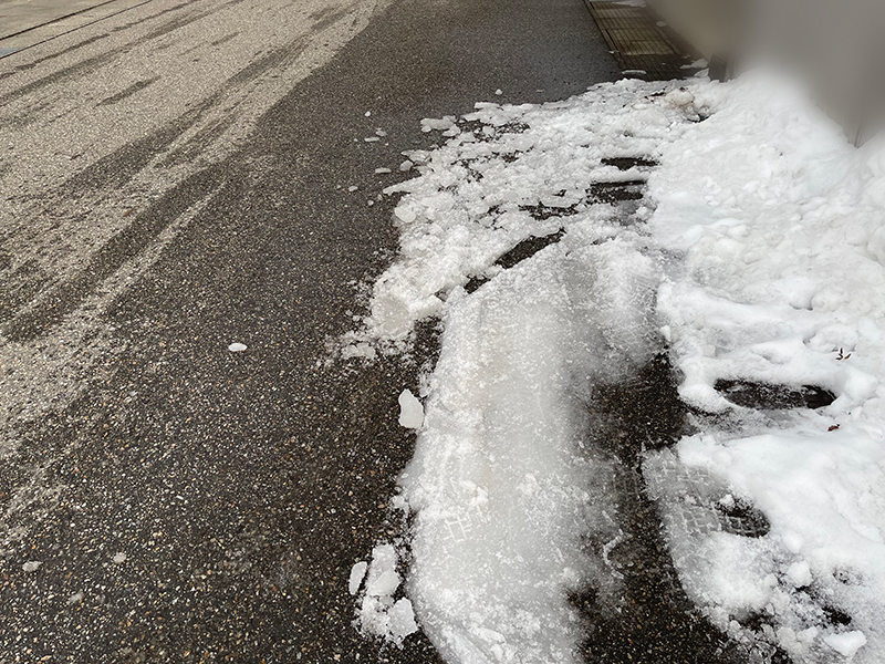 うちは、ちょうど幹線道路への出入り口となっていますので、せめて滑らないように、はまらないように空けたいなと。