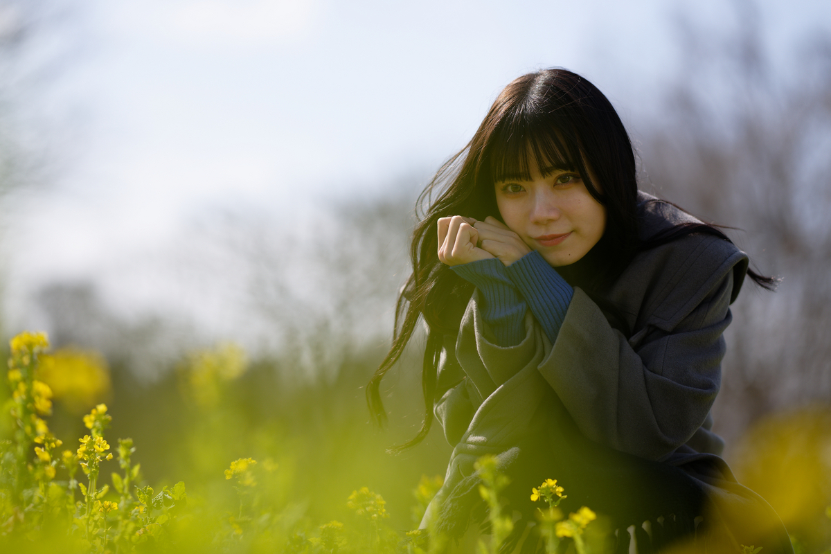 本日のお休みショットは、菜の花畑のなるはちゃんです。
