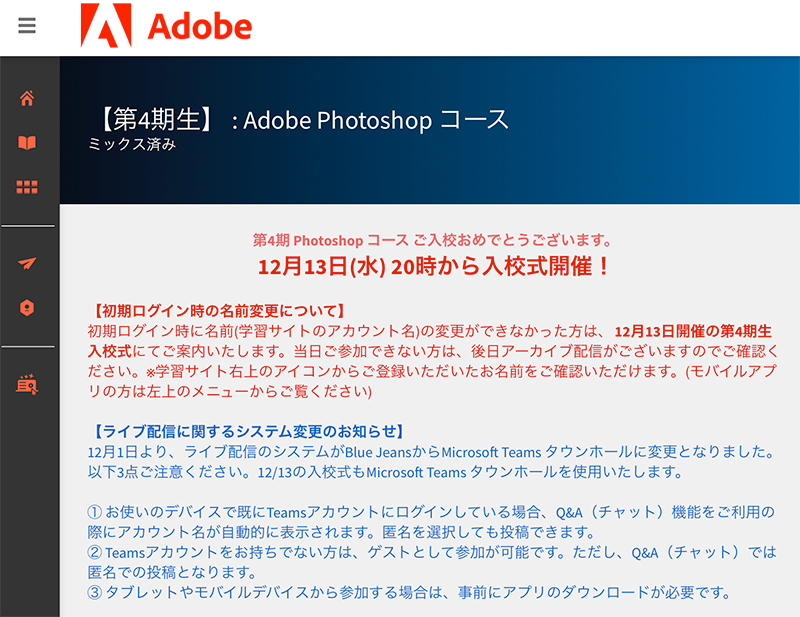 毎週水曜日に2コマズツ配信されるとのこと、なんとか溜めないように消化していきたいと思います (^^)