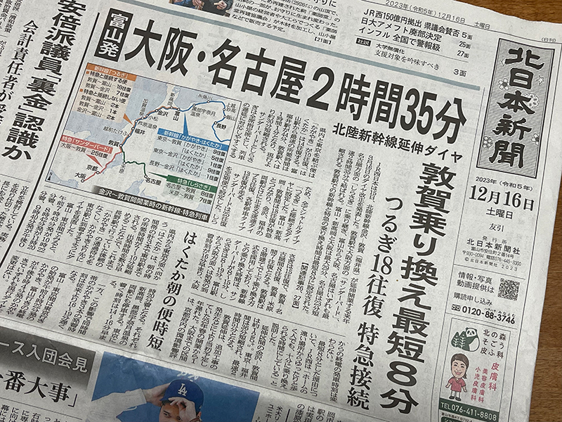 画像は昨日の新聞ですが、15日に北陸新幹線が延伸して以降のダイヤ改正が発表されました。