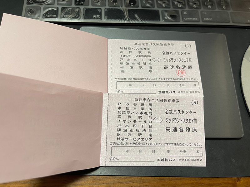 明日の名古屋行きに向けて、バスの回数券の準備を。