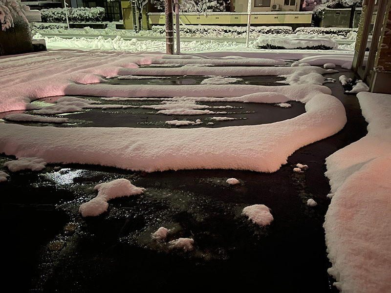 うちの店の駐車場、ロードヒーティングが効いてくれていて、よかったです。