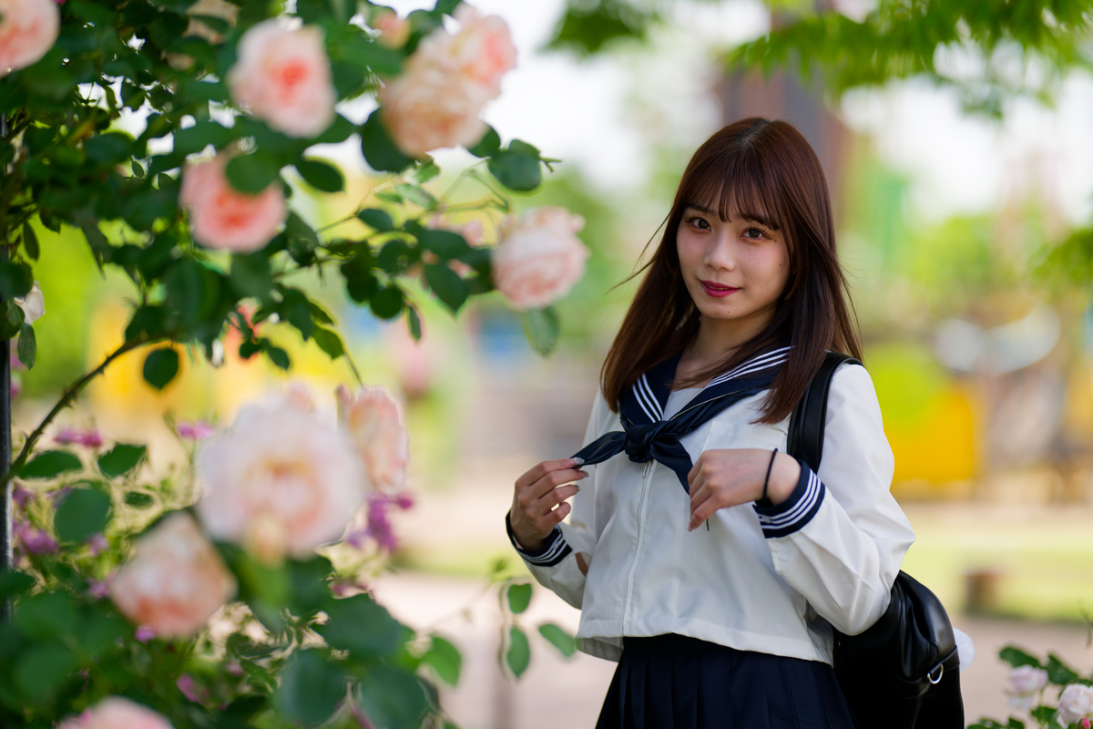 本日のお休みショットは、おとぎの森公園のバラ園のなるはちゃんです。