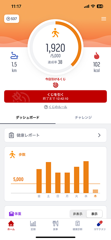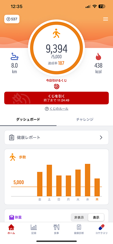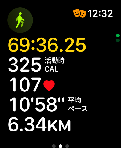総歩数は9,394歩、6.34kmを69分36秒、10分58秒/kmのペースでした (^^)