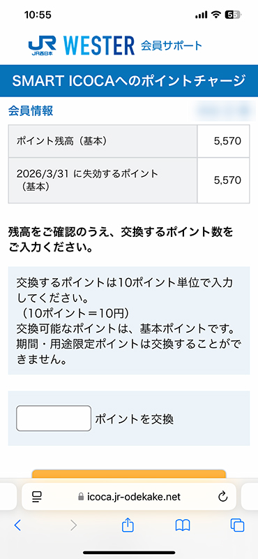 ですが、ここに来る前に、事前に「WESTER会員サポート」のページで、いくら分のポイントをチャージしますよ、という手続きをしているみたいなんです。