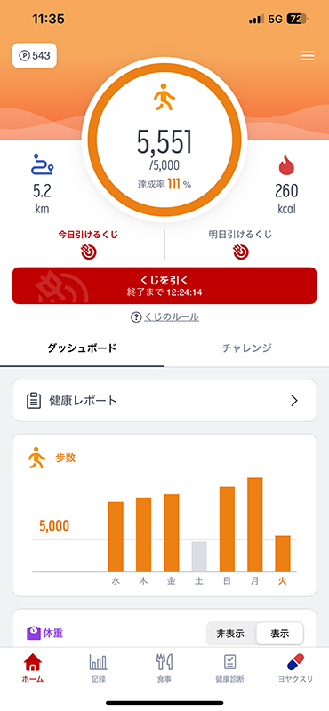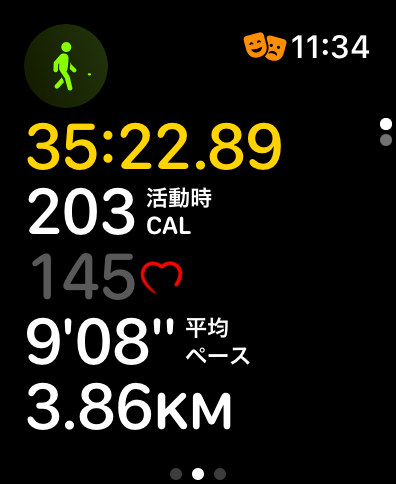総歩数は5,551歩、3.86kmを35分22秒、9分08秒/kmのペースでした (^^)