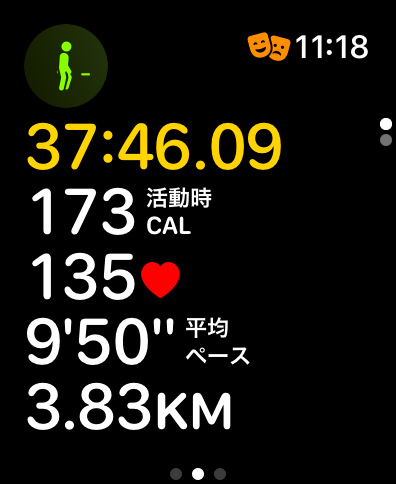 総歩数は6,119歩、3.83kmを37分46秒、9分50秒/kmのペースでした (^^)