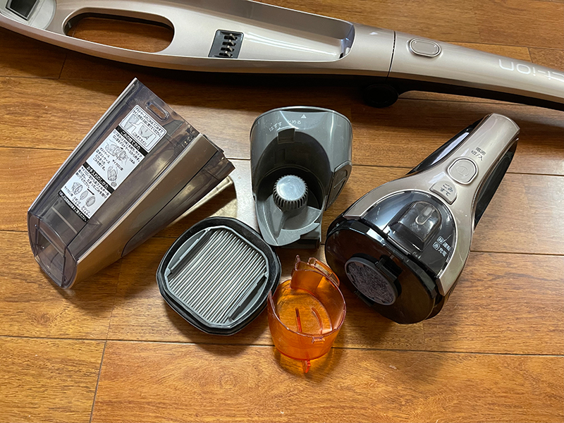そして、ダストボックスを分解して、いろいろな箇所に付いたホコリ等のごみを手で払ってみたのですが、やはり、細かいところまでは取れません。