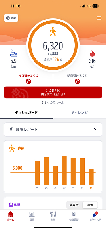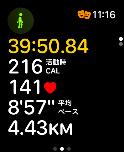 総歩数は6,320歩、4.43kmを39分50秒、8分57秒/kmのペースでした (^^)