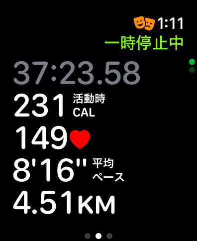 総歩数は5,863歩、4.45kmを37分55秒、8分30秒/kmのペースでした (^^)