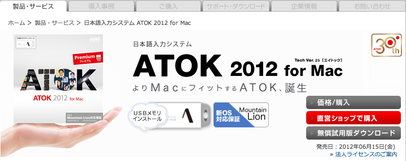 ATOK 2012 for Mac、申し込みました。素のまんまのベーシック、AAA優待版のパッケージ製品、5,250円です。