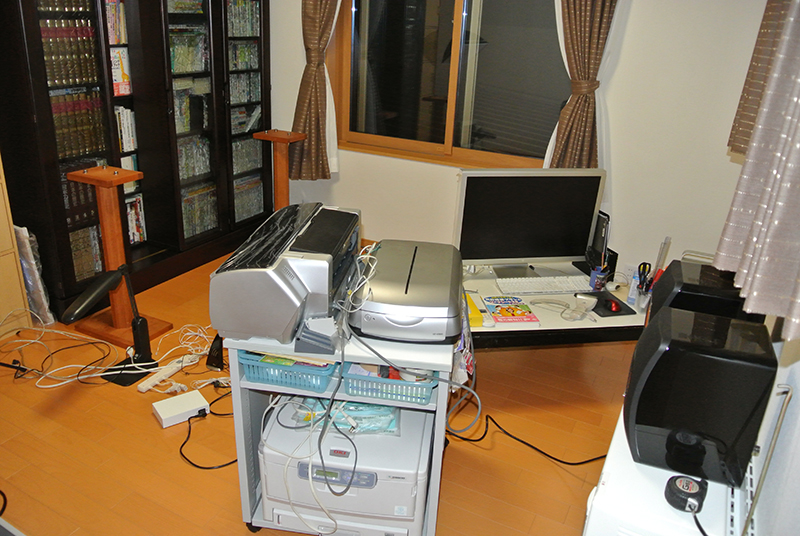 昨晩は、機器を設置すべく片付け始めたはいいですが、自室の空母Power Macやプリンタ、スキャナの配置換えのため、電源コードをすべて抜いて、掃除していくうち、収拾の付かない状態になってしまいました。