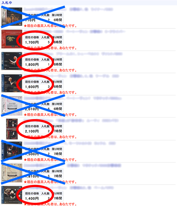 これ、もし、リアルタイムで眺めていたら、たぶん熱くなって、全点落札を目指したのではないかと思うんですよね。自分の性分として…。